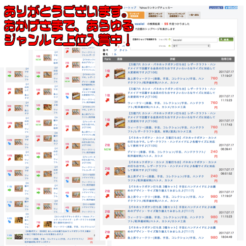 こちらはyahooでの受賞記録ですが、沢山のご注文をいただき、様々なジャンルにおいて当店商品が上位をほぼ独占している報告が寄せられました。